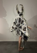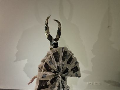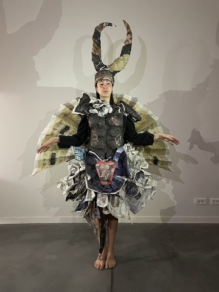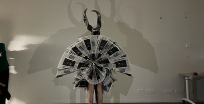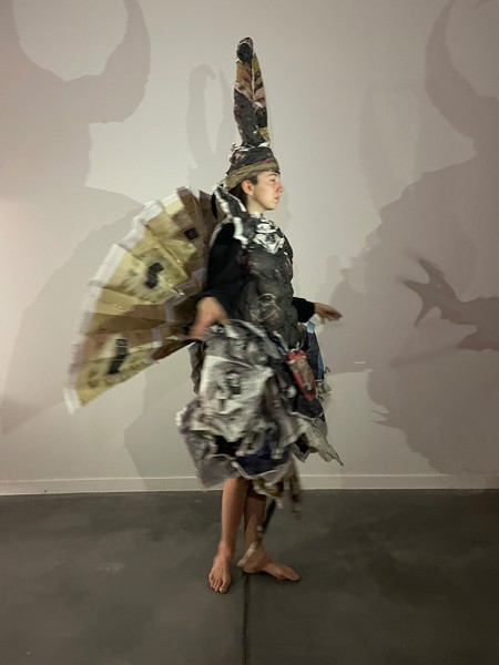 Conception et réalisation d’un costume de fée masculin entièrement en papier journal. Inspiré de la figure du faune, ce costume incarne une créature incarnant des stéréotypes physiques masculins. Le Faune est un costume d’apparat fait pour se montrer et être vu, mais seulement de face?